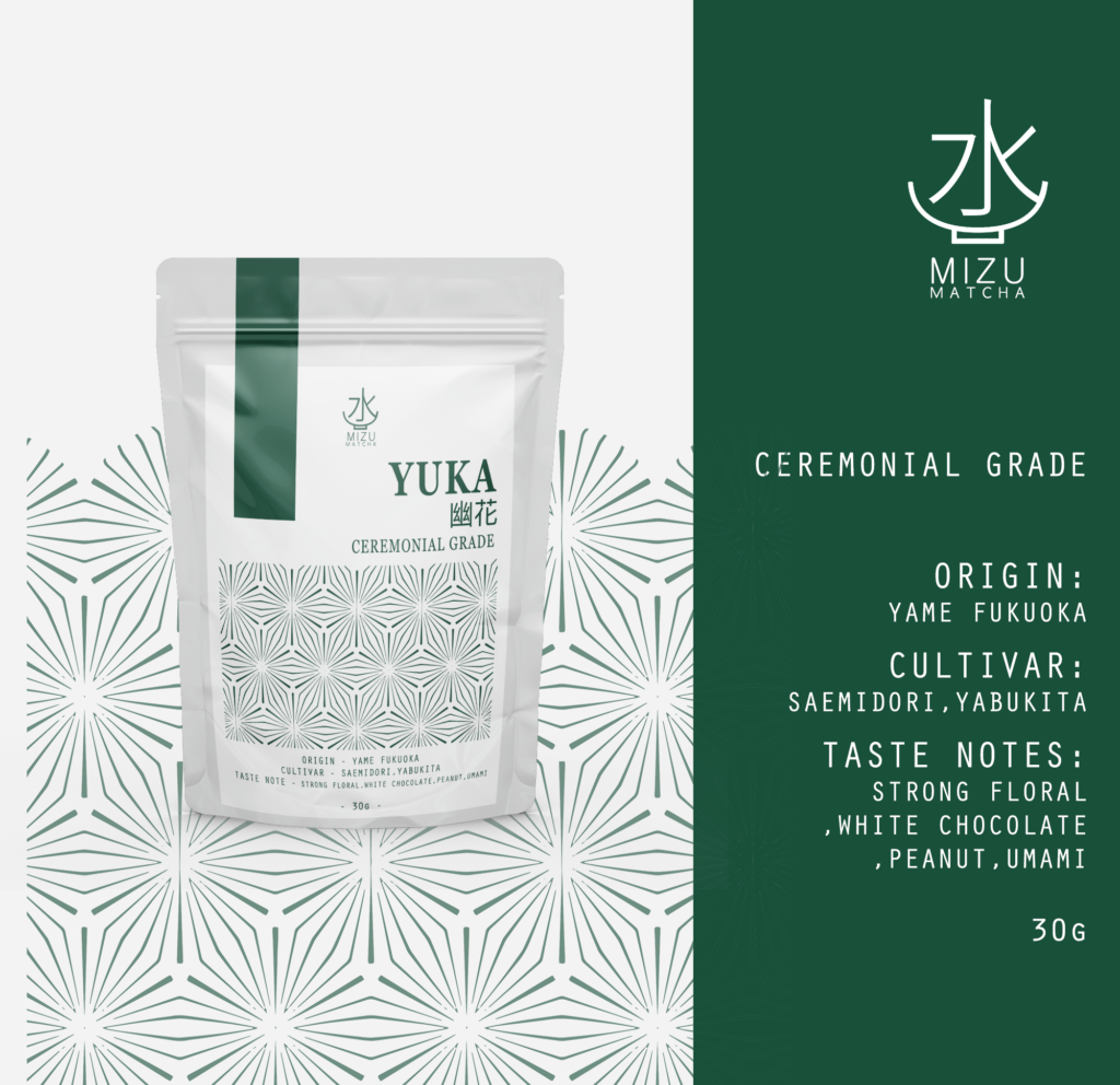 ดอกไม้ลี้ลับ หอมกลิ่นดอกไม้ป่าในบรรยากาศ นิ่งสงบ Yuka มาจากไร่ชาที่อยู่ในหุบเขา จากเมือง Yame จังหวัด Fukuoka เป็นผงมัทฉะเกรดพิธีการ เทสโน๊ต ถั่วลิสงผสมความครีมมี่คล้าย ไวท์ช็อคโกแลต บอดี้กลางๆ ไม่มีความขม ปลายมีความหวาน และอูมามิยาว ที่สำคัญหอมดอกไม้มากๆ เหมาะกับชงลาเต้และชงเพียว